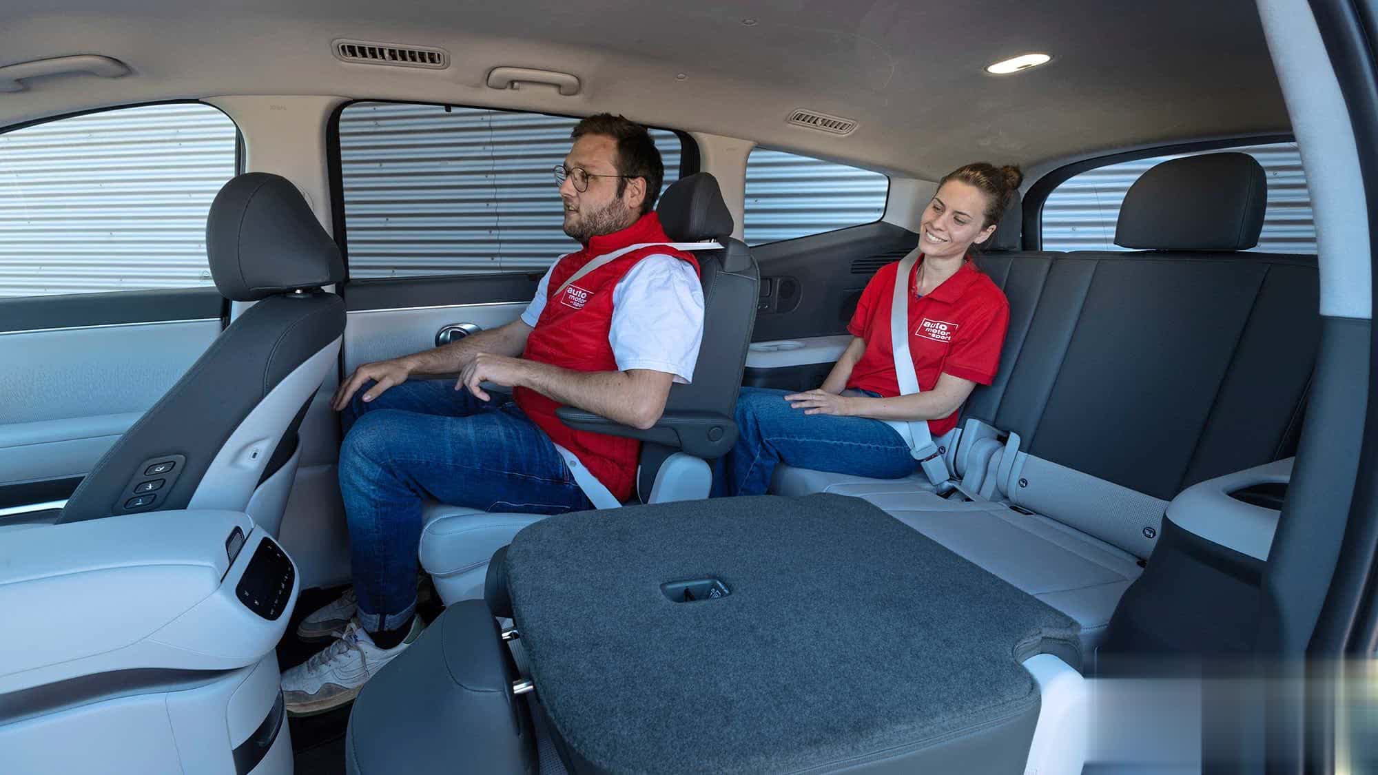 第三排乘客的待遇也相当不错。上下车方便、座椅为独立单人座椅,舒适度远胜多数七座SUV的“临时板凳”。再加上自动水平调节的后悬挂与出色的减震调校,IONIQ 9无论面对高速路接缝还是坑洼路面,都能轻柔地化解。