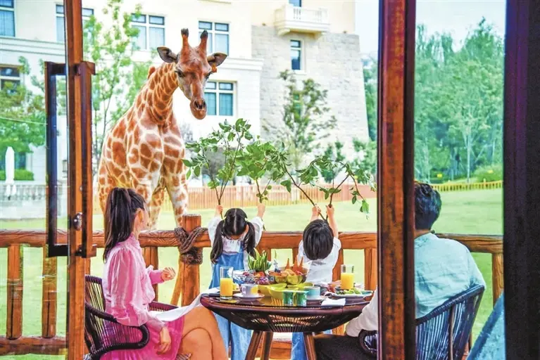 亲子家庭还能在酒店与长颈鹿共进早餐呢