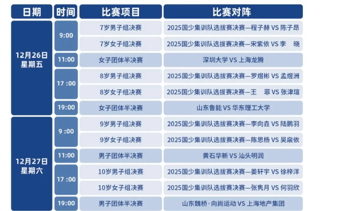 从赛程来看12月26日山东魏桥俱乐部没有比赛,山东魏桥VS上海地产的比赛是在12月27日晚上19点整,换言之王楚钦到了南京后还有两天的休养时间。