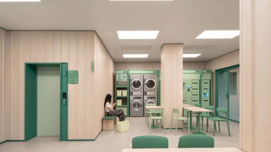 “自助不是无人管,而是把服务主动权还给住客。”该自助酒店的设计者、朱周空间设计创始人周光明如此阐释他的设计理念。针对老年人、外宾等群体,酒店保留“员工协助通道”,值班室与自助区仅一墙之隔,按铃30秒内响应;80平方米的大堂被重新定义为“功”区——自助入住、自助洗衣、自助寄存、自助早餐一字排开,动线最短不超过15步。三道门禁层层递进:大门感应常开、公区刷房卡、电梯二次核验、客房插卡开门,无感守护隐私与安全。